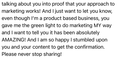 Rather than constantly strategizing our way to sales doing things that make us miserable, we can lean into our values to connect with people who absolutely LOVE what we have to say & can’t wait to hear from us again.
