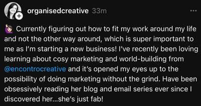 We can stop chasing strategies & tactics because our world draws people in for us. Reels hooks & email subject lines become fun things to test and play with rather than the make-or-break focus of our day.